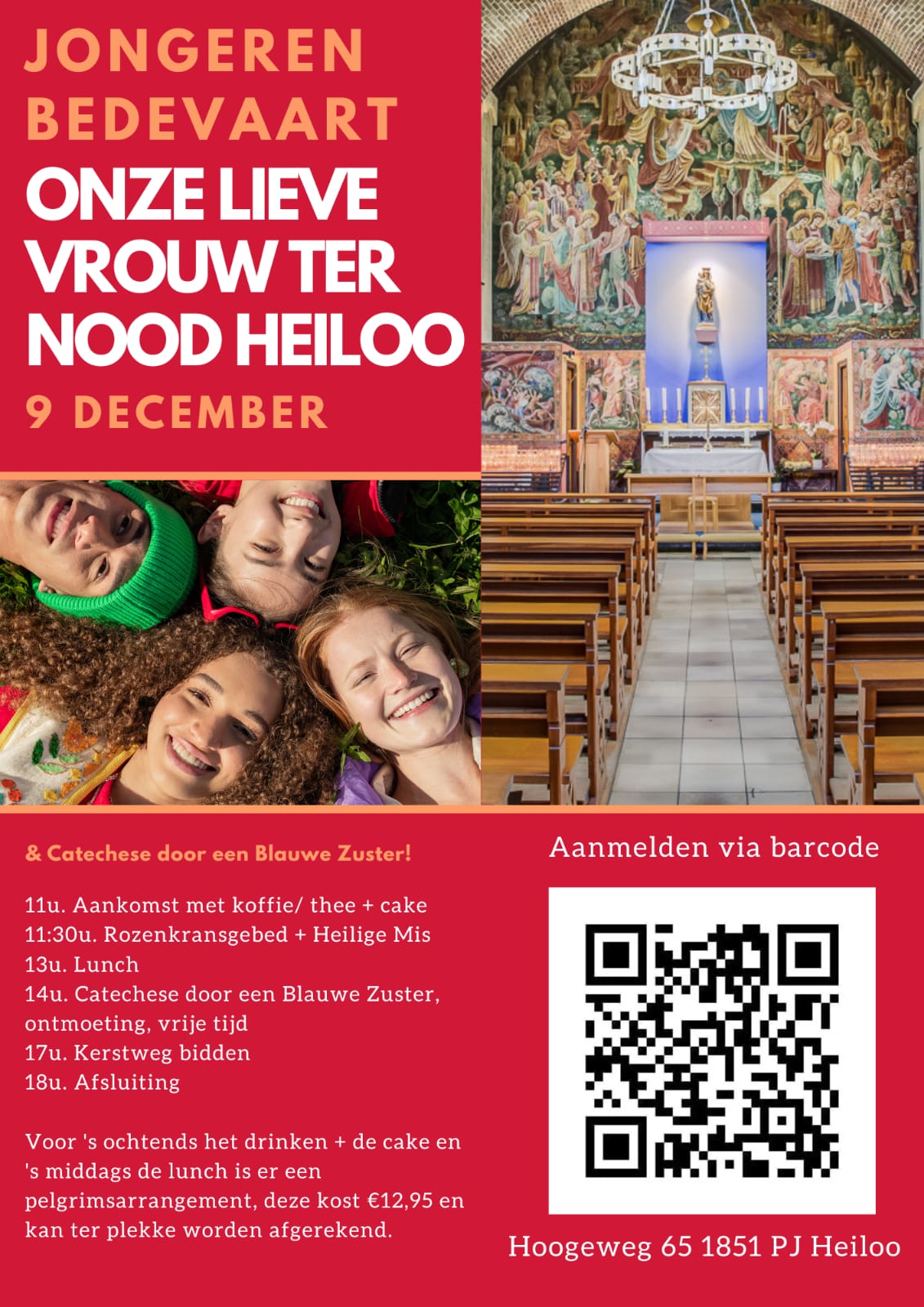 Op zaterdag 9 december vindt er een jongerenbedevaart plaats op het Heiligdom en bedevaartsoort van Onze Lieve Vrouw ter Nood te Heiloo. Samen een bedevaart maken met leeftijdsgenoten die ook op weg zijn met Jezus.