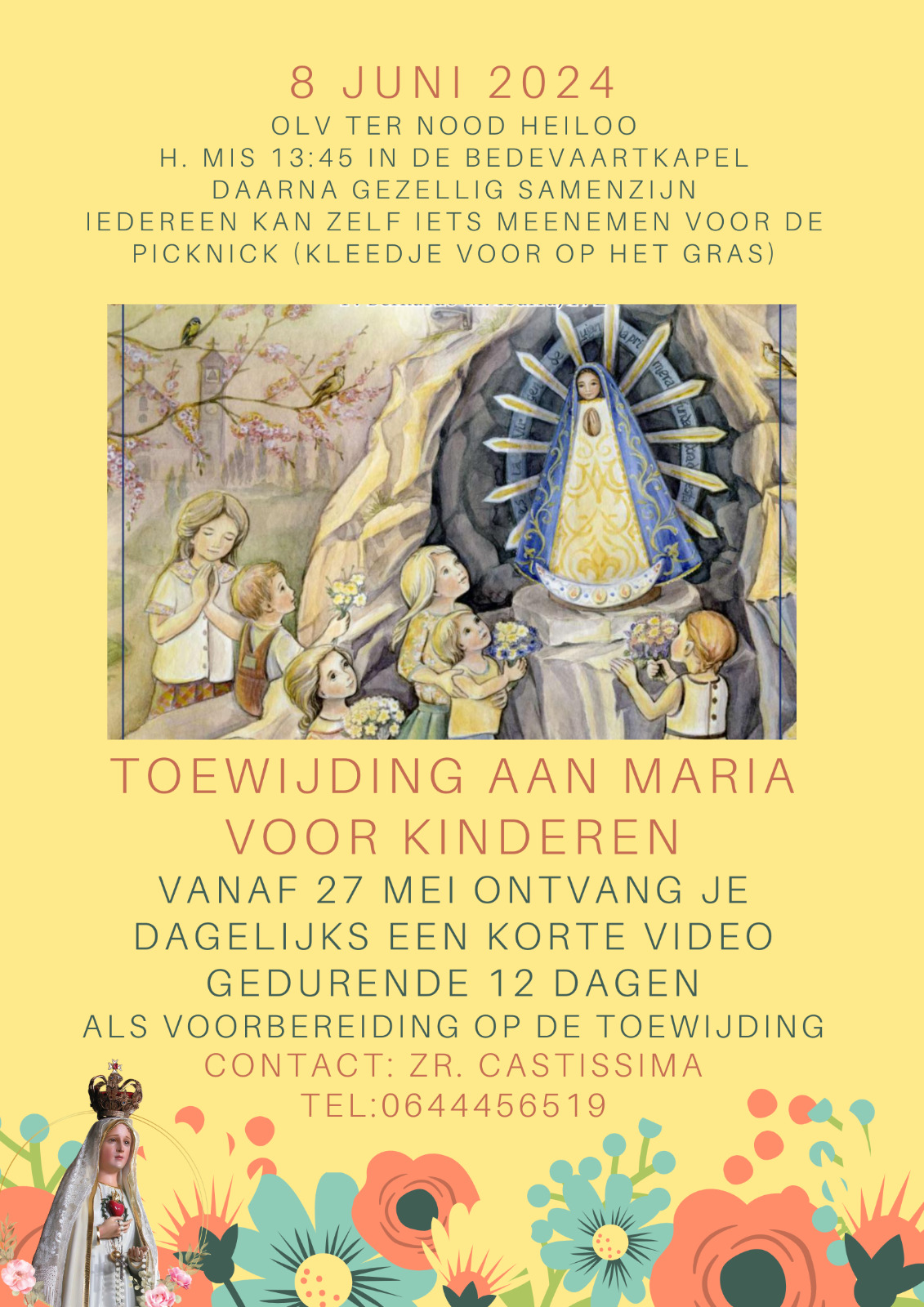 Vanaf 27 mei ontvang je gedurende 12 dagen, dagelijks een korte video ter voorbereiding op de toewijding aan Maria op zaterdag 8 juni 2024 in de Bedevaartkapel om 13.45 uur.